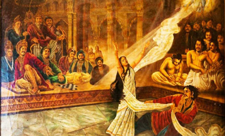 ‘દુ:શાસન! પાંચાલીને નિર્વસ્ત્ર કર! આવી સુંદર સ્ત્રીનું સૌંદંર્ય સભા ભલે જોઈ લે! અને દાસીને શી લજ્જા અને દાસીને શું ચારિત્ર્ય!’