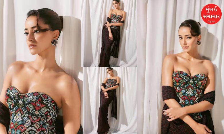 અનન્યાના વાયરલ ફોટા ફિલ્મફેર એવોર્ડ્સના છે. તેણે પટોળા ડિઝાઇનના કોર્સેટ બ્લાઉઝ સાથે ગુજરાતી બાંધણી સાડી પહેરી હતી. અનન્યા પાંડેનો લુક અદભુત છે. અભિનેત્રીના આ ફોટા હવે સોશિયલ મીડિયા પર વાયરલ થઈ રહ્યા છે. તેની સુંદરતાએ બધાને મોહિત કરી દીધા છે. અબુ જાની સંદીપ ખોસલાની આ ખાસ બાંધણી સાડીએ અનન્યાના રેડ કાર્પેટ પર છવાઈ ગઈ હતી.