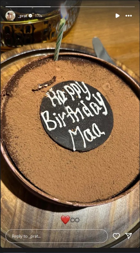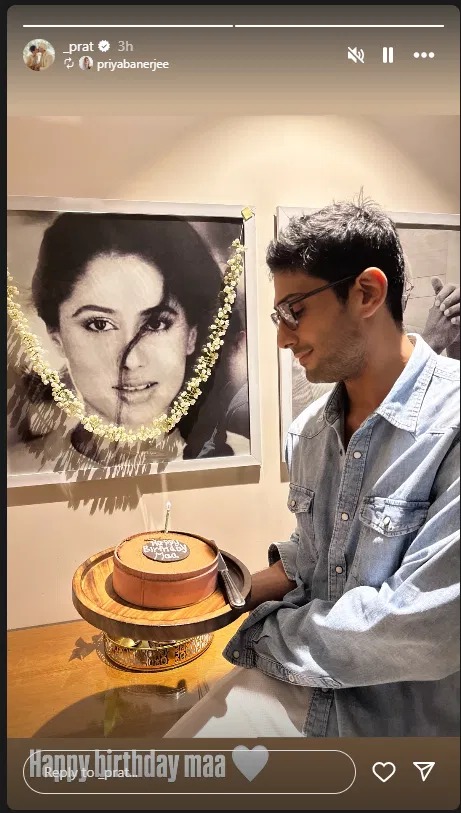 પ્રતિક બબ્બરે ઇન્સ્ટાગ્રામ સ્ટોરીમાં બે ફોટો શેર કર્યા છે. જે પૈકી એક ફોટોમાં ‘હેપ્પી બર્થ ડે મા’ લખેલી કેક જોવા મળે છે. જ્યારે બીજા ફોટોમાં પ્રતિક બબ્બર સ્મિતા પાટીલના બ્લેક એન્ડ વ્હાઈટ ફોટો પાસે કેક લઈને ઉભેલો જોવા મળે છે. ફોટોના કેપ્શનમાં ‘હેપ્પી બર્થ ડે મા’ લખેલું છે.