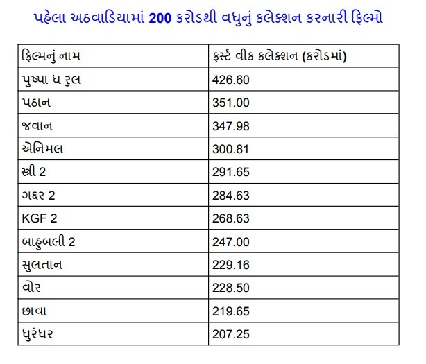 ‘ધુરંધર’ ફિલ્મે પહેલા અઠવાડિયામાં જ 207.25 કરોડનું શાનદાર બોક્સ ઓફિસ કલેક્શન કર્યું છે. આ સાથે ‘ધુરંધર’ ફિલ્મ પહેલા અઠવાડિયામાં 200 કરોડ કરતાંય વધારે કમાણી કરનારી બીજી ફિલ્મ બની ગઈ છે. આગામી સમયમાં આ ફિલ્મ 250 કરોડને પાર પહોંચી જશે, એવું ફિલ્મી સૂત્રો અનુમાન લગાવી રહ્યા છે. જોકે તેમ છતાંય એવી 11 ફિલ્મો છે, જેનો રેકોર્ડ ‘ધુરંધર’ ફિલ્મ તોડી શકી નથી.