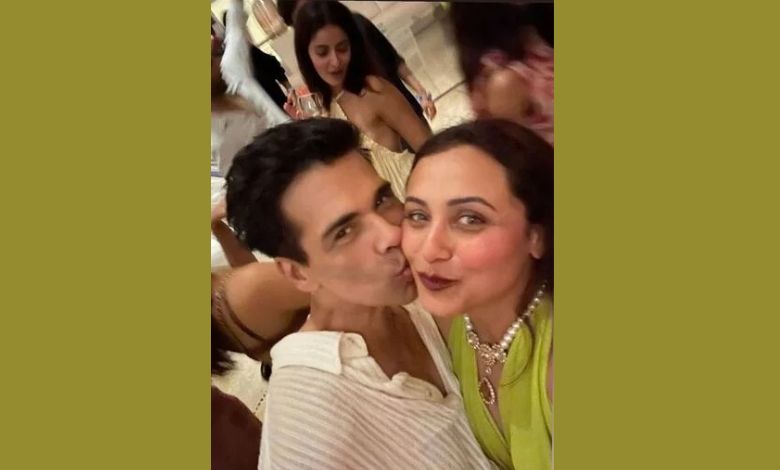 જોકે કરણ જોહરે એક તસવીર શેર કરી છે, તેમાં કરણ અને અભિનેત્રી રાનીની પાછળ અનન્યા પાંડે હાથમાં ગ્લાસ લઈ નાચતી દેખાય છે.