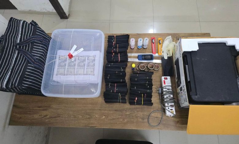 જપ્ત કરાયેલો મુદ્દામાલ નકલી કરન્સી સહિત સાધનો અને મોબાઈલ ફોન કબજે પોલીસે સ્થળ પરથી રૂ. 24,30,000ની નકલી કરન્સી, કલર પ્રિન્ટર, પેપર કટર, ફૂટપટ્ટી, ઇલેક્ટ્રિક બોર્ડ, નકલી નોટ માટેનો ખાસ કાગળ (3 મોટા પેકેટ), 2 મોબાઈલ ફોન અને અન્ય સામગ્રી જપ્ત કરી હતી.