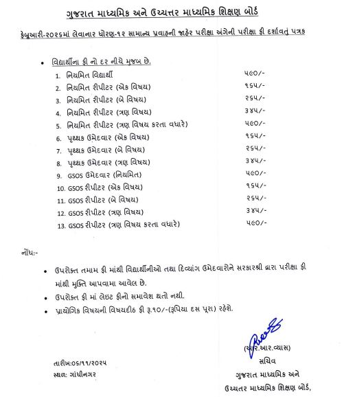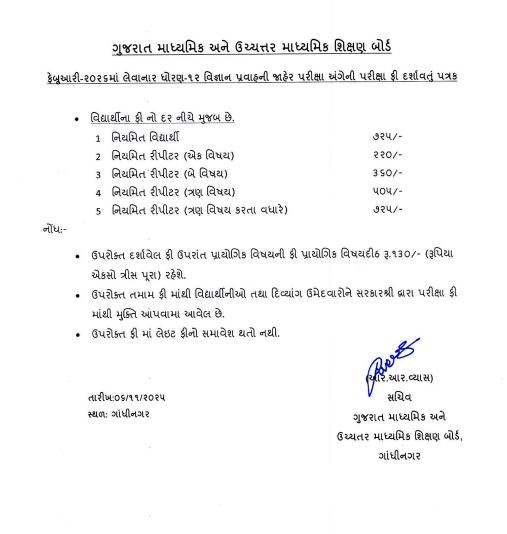 પરીક્ષા ફોર્મ ભરવાની વાત કરવામાં આવે તો, બોર્ડની પરીક્ષાના ફોર્મ બોર્ડની સત્તાવાર વેબસાઈટ પર તારીખ 07 નવેમ્બરથી શરૂ કરી દેવામાં આવ્યાં છે. ફોર્મ ભરવાની આ પ્રક્રિયા આગામી 06 ડિસેમ્બરે રાત્રે 12:00 સુધી ચાલુ રહેશે. આ દરમિયાન દરેક પરીક્ષાર્થીએ પરીક્ષા ફોર્મ અને ફી કરવાની રહેશે.