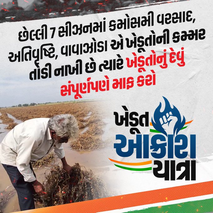ખેડૂતો માટે કૉંગ્રેસ આવતીકાલથી મેદાનેઃ સૌરાષ્ટ્રના 11 જિલ્લામાં આક્રોશ યાત્રા…