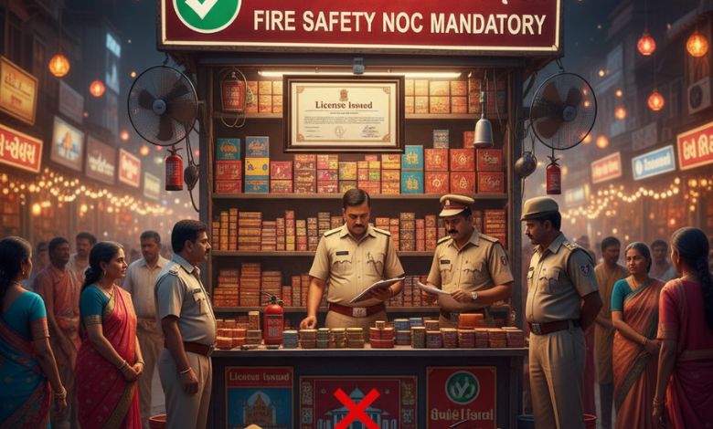 ગુજરાતમાં ફટાકડા વિક્રેતાઓ માટે ફાયર સેફ્ટી NOC ફરજિયાત: હવે 500 ચો.મી.થી નાની દુકાનોને પણ લાગુ…