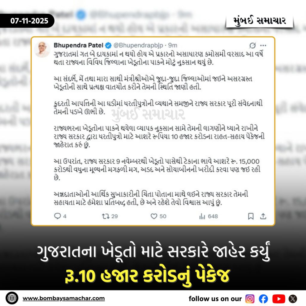 આ પણ વાંચો…ભૂપેન્દ્ર પટેલ સરકારના ખેડૂતો માટેના પેકેજથી નારાજ દિગ્ગજ નેતાનું ભાજપમાંથી રાજીનામું