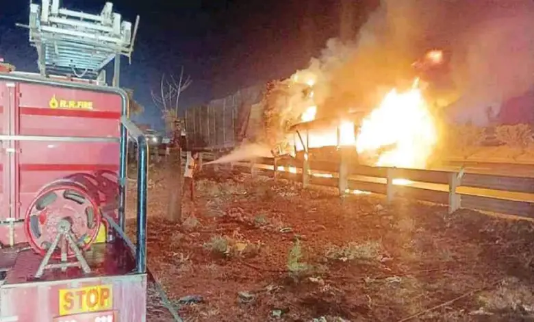 વડોદરાથી કચ્છ ફરવા આવેલા પ્રવાસીઓની મીની બસ અને ટ્રક વચ્ચે અકસ્માત બાદ લાગી આગ…