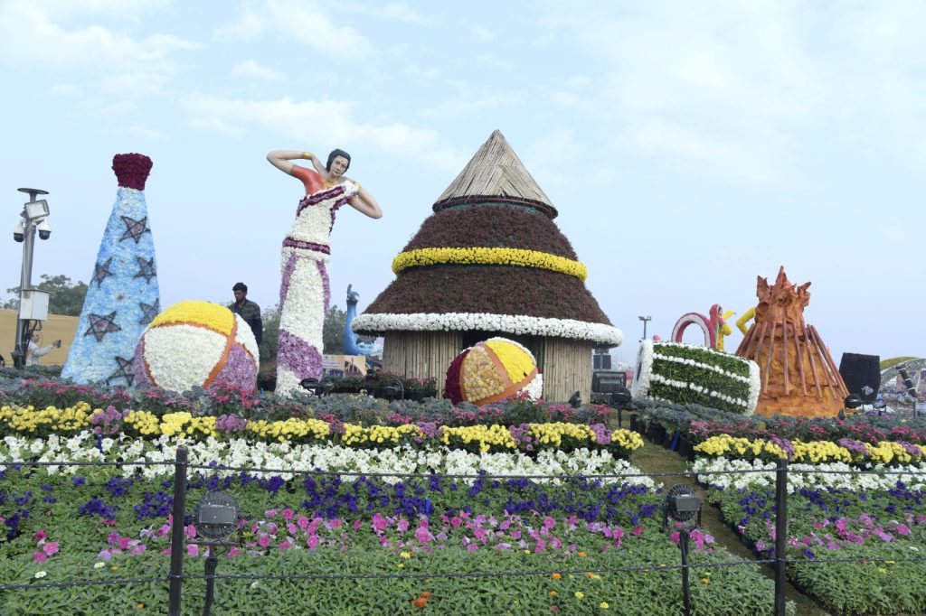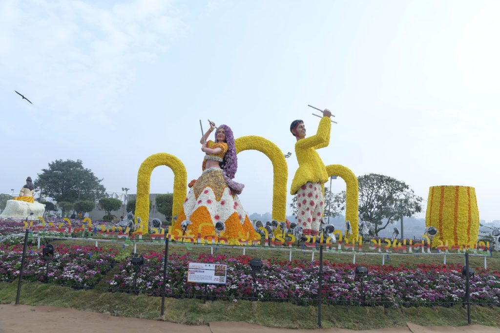 ભારતના નૃત્યો થીમ અંતર્ગત વિવિધ રાજ્યોના નૃત્યોને ફૂલના માધ્યમથી રજૂ કરવામાં આવ્યા છે.