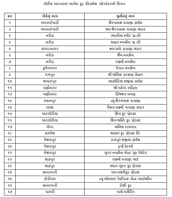 ગ્વાલિયા, આસ્ટોડિયા ભજીયા સહિત 27 મીઠાઈ-ફરસાણવાળાને નોટિસ
