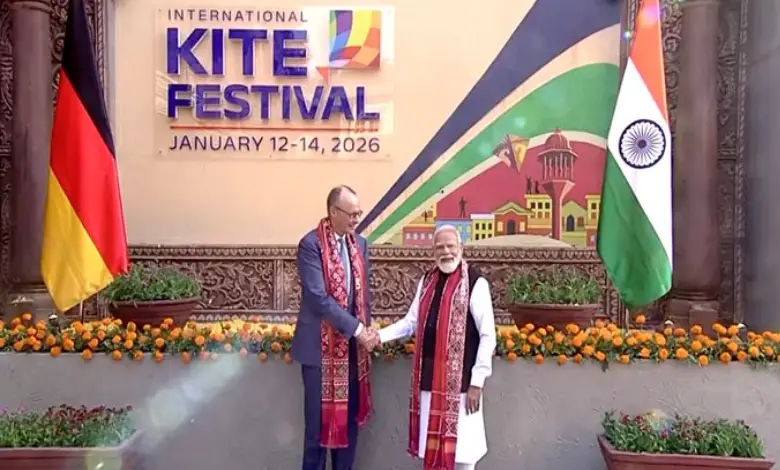 અમદાવાદ: સાબરમતી રિવરફ્રન્ટ ખાતે આયોજિત આંતરરાષ્ટ્રીય પતંગ મહોત્સવમાં આજે એક અનોખો નજારો જોવા મળ્યો હતો. વડાપ્રધાન નરેન્દ્ર મોદી અને જર્મનીના ચાન્સેલર ફ્રીડ્રિચ મેર્ઝે આ મહોત્સવમાં વિશેષ હાજરી આપી હતી. બંને નેતાઓએ રિવરફ્રન્ટ પર ઉમટી પડેલા પતંગબાજો અને નાગરિકોનું અભિવાદન ઝીલ્યું હતું અને આકાશમાં લહેરાતા રંગબેરંગી પતંગોના અદભૂત દ્રશ્યોને નિહાળ્યા હતા. આ પ્રસંગે મૈત્રીપૂર્ણ વાતાવરણમાં બંને મહાનુભાવોએ પતંગ ઉડાડવામાં પણ પોતાનો હાથ અજમાવ્યો હતો, જે ઉપસ્થિત લોકો માટે આકર્ષણનું કેન્દ્ર બન્યું હતું.