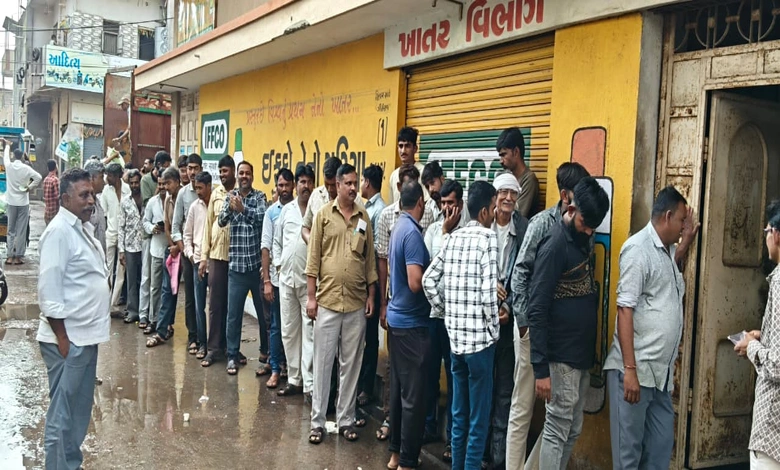 કમોસમી વરસાદ વચ્ચે જામ ખંભાળીયામાં DAP ખાતર માટે લાઈન લાગી, જુઓ વીડિયો