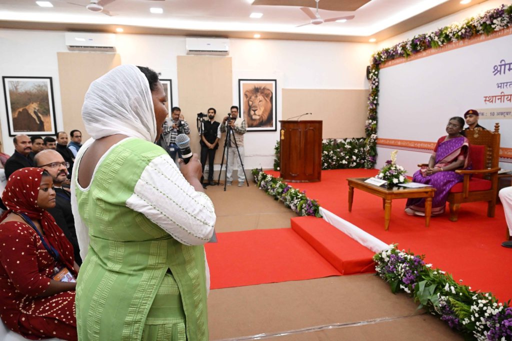 રાષ્ટ્રપતિ દ્રૌપદી મુર્મૂએ ભવ્ય એશિયાટિક સિંહના નિવાસસ્થાન અને સમૃદ્ધ, વૈવિધ્યસભર વન્યજીવન ધરાવતા ગીર રાષ્ટ્રીય ઉદ્યાનની મુલાકાત લીધી હતી. ત્યારબાદ, તેમણે સ્થાનિક આદિવાસી લોકો સાથે પણ સંવાદ કર્યો હતો. રાષ્ટ્રપતિએ જણાવ્યું હતું કે આદિવાસી સમુદાયની પ્રકૃતિ-અનુકૂળ જીવનશૈલી આપણા બધા માટે પ્રેરણાનો સ્ત્રોત છે. તેમણે પરંપરાઓનું જતન કરવાની સાથે સાથે વિકાસના મહત્ત્વ પર ભાર મૂક્યો હતો. તેમણે ગીરમાં વસતા સીદી સમુદાયના લોકો સાથે મુલાકાત કરી હતી. રાષ્ટ્રપતિ દ્વારા તેમનું જીવન, પરંપરાઓ અને પડકારો વિશે જાણકારી મેળવી હતી.