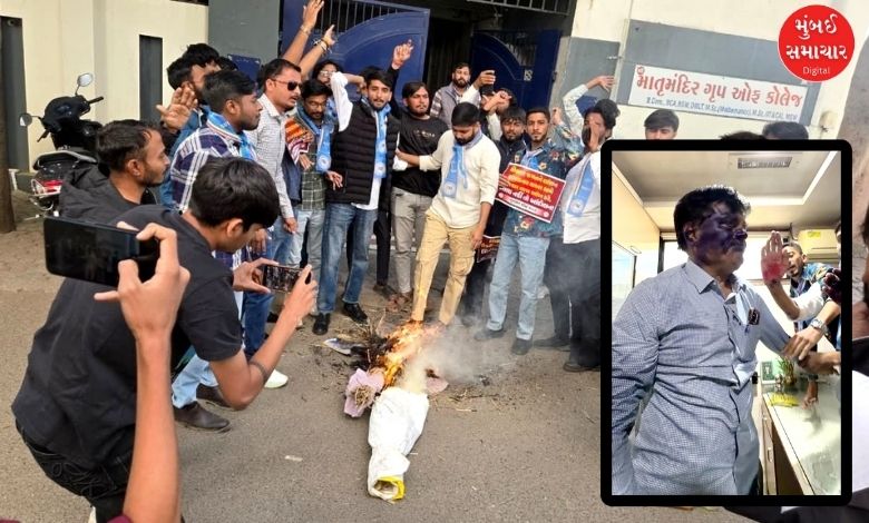 સૌરાષ્ટ્ર યુનિ.ના પૂર્વ કુલપતિ ગિરીશ ભીમાણીનું NSUIના વિદ્યાર્થીઓએ મોં કાળું કર્યું, છેડતીના આક્ષેપ બાદ ઉગ્ર વિરોધ