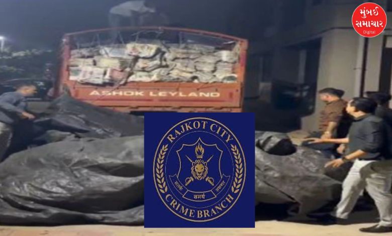 રાજકોટ: ૩૧ ડિસેમ્બરની ઉજવણી પૂર્વે સક્રિય થયેલા બુટલેગરોના મનસૂબા પર રાજકોટ ક્રાઈમ બ્રાન્ચે પાણી ફેરવી દીધું હતું. પેટ્રોલિંગ દરમિયાન પોલીસ ટીમને મળેલી ચોક્કસ બાતમીના આધારે મૈસુર ભગત ચોકડી પાસે વોચ ગોઠવી હતી. આ દરમિયાન ચોટીલા તરફથી આવતા એક આઈસર ટ્રકને અટકાવી તપાસ કરતા તેમાંથી છાપાની પસ્તીની આડમાં છુપાવેલો વિદેશી દારૂનો મોટો જથ્થો મળી આવ્યો હતો.