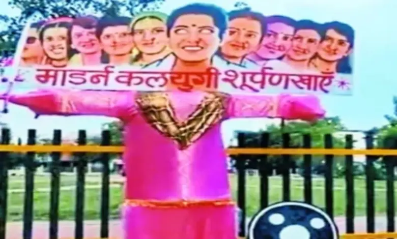 છત્રપતિ સંભાજીનગર: અસત્ય પર સત્યના વિજય રૂપે વિજયાદશમીનો પર્વ ઉજવવામાં આવે છે અને રાવણના પૂતળાનું દહન કરવામાં આવે છે, પરંતુ છત્રપતિ સંભાજીનગરમાં એક જગ્યાએ રાવણના બદલે તેની બહેન શૂર્પણખાના પૂતળાને બાળવામાં આવ્યું હતું. દહન પહેલા આરતી ગાવામાં આવી અને વિધિસર કાર્યક્રમ યોજવામાં આવ્યો હતો. પત્ની પીડિત આશ્રમના પદાધિકારીઓ દ્વારા આ કાર્યક્રમનું આયોજન કરાયું હતું.