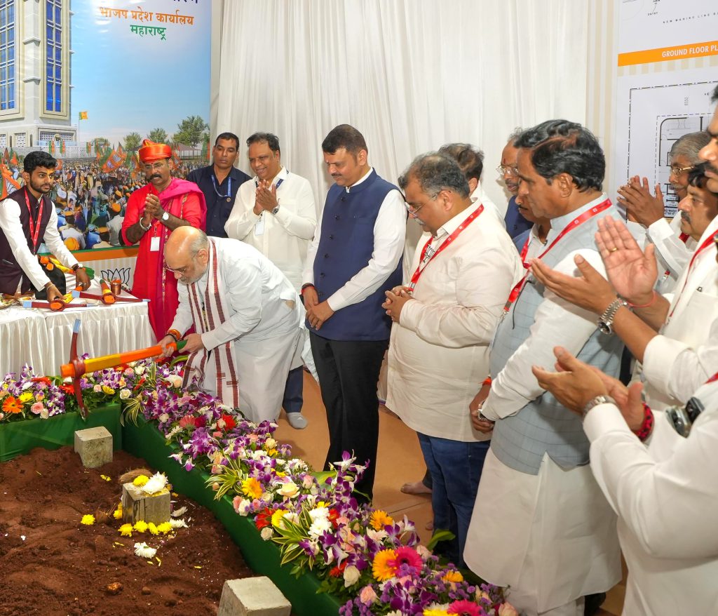 ભૂમિપૂજન કરવામાં આવ્યું. આ કાર્યક્રમમાં મુખ્યપ્રધાન દેવેન્દ્ર ફડણવીસ અને અન્ય વરિષ્ઠ ભાજપ નેતાઓ હાજર રહ્યા હતા. ભૂમિપૂજન કાર્યક્રમમાં બોલતા અમિત શાહે કહ્યું કે ‘સોમવારનો દિવસ ભાજપના કાર્યકર્તાઓ માટે શુભ દિવસ હતો. ભાજપ કાર્યાલય આપણા કાર્યકર્તાઓ માટે મંદિરથી ઓછું નથી.’