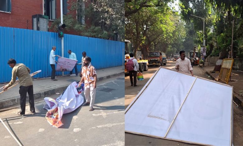 મુંબઈ મહાનગરપાલિકાની ચૂંટણી માટે આચારસંહિતા લાગુ પડયા બાદ મુંબઈના જુદા જુદા રાજકીય પક્ષ ને તેમના કાર્યકર્તાઓ દ્વારા લગાડવામાં આવેલાં બોર્ડ, બેનર, પોસ્ટર તથા ઝંડા હટાવવાનું કામ શરૂ થયું છે. ૧૫ ડિસેમ્બરના પહેલા દિવસની કાર્યવાહીમાં લગભગ ૧,૮૧૩ ગેરકાયદે બેનર અને બોર્ડ વગેરે સામે કાર્યવાહી કરવામાં આવી હતી ત્યારબાદ ૧૬ ડિસેમ્બરના સૌથી વધુ ૩,૭૫૦ જાહેરાતો સામે કાર્યવાહી કરવામાં આવી હતી. ૨૫ ડિસેમ્બર, ૨૦૨૫ના જાહેર રજાના દિવસે એક પણ પોસ્ટર કે બેનરો સામે કાર્યવાહી કરવામાં આવી નહોતી.