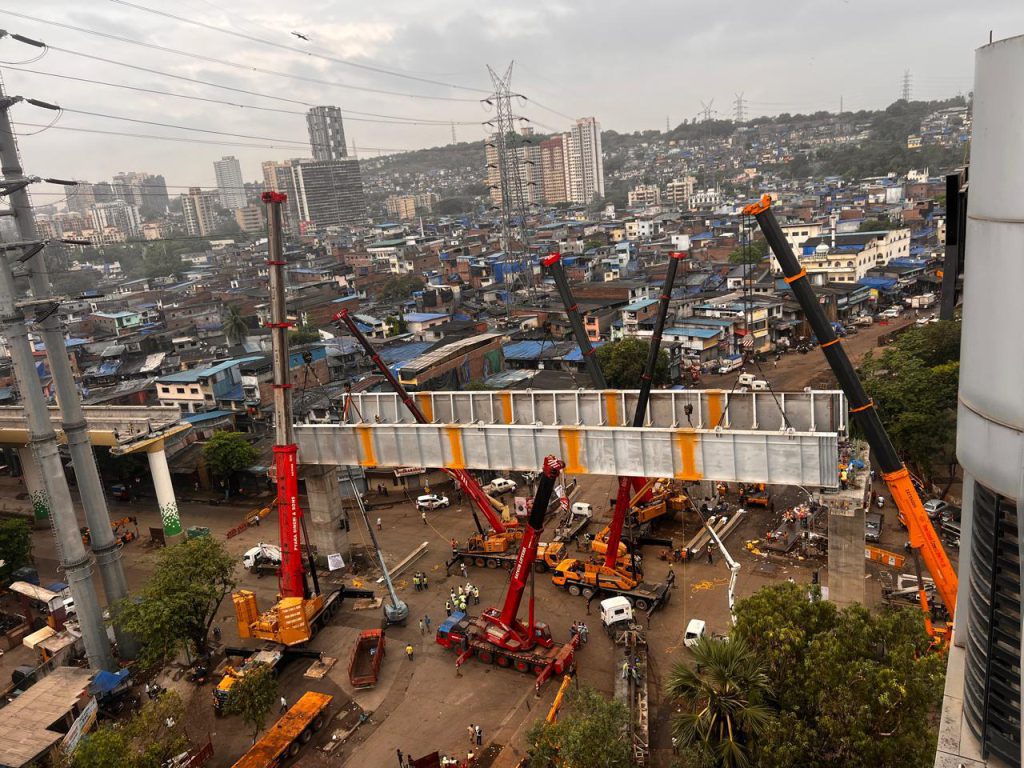મુંબઈ: મેટ્રો-ચાર માટે મુંબઈ મેટ્રોપોલિટન રિજન ડેવલપમેન્ટ ઓથોરિટી (એમએમઆરડીએ)એ અત્યંત વ્યસ્ત ગણાતા એલબીએસ માર્ગ પરના ભાંડુપ-સોનાપુર જંકશન પર રાતોરાત ૫૬ મીટર લાંબો અને ૪૫૦ ટન વજનના સ્ટીલ સ્પાનને સફળતાપૂર્વક બેસાડવાની સિદ્ધી હાસિલ કરી હતી.