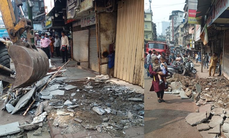 મુંબઈ: દક્ષિણ મુંબઈના પ્રખ્યાત મોહમ્મદ અલી રોડ અને ઈબ્રાહિમ મર્ચન્ટ રોડના ભીડભાડવાળા કમર્શિયલ વિસ્તારમાં ફૂટપાથ પર ગેરકાયદે રીતે ઊભા કરવામાં આવેલા બાંધકામને મુંબઈ મહાનગરપાલિકા દ્વારા સોમવારે કાર્યવાહી કરીને તોડી પાડવામાં આવ્યા હતા. આ કાર્યવાહી વ્યસ્ત ગણાતા બજાર વિસ્તારમાં રાહદારીઓના માર્ગ સાફ કરવા અને ટ્રાફિકની ભીડ હળવી કરવા માટે હાથ ધરવામાં આવી હતી.