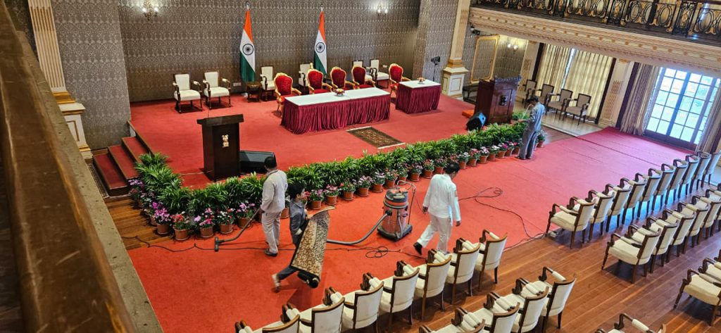 શપથવિધિ સમારોહ માટે રાજભવનમાં તાડામાર તૈયારીઓ હાથ ધરવામાં આવી રહી છે