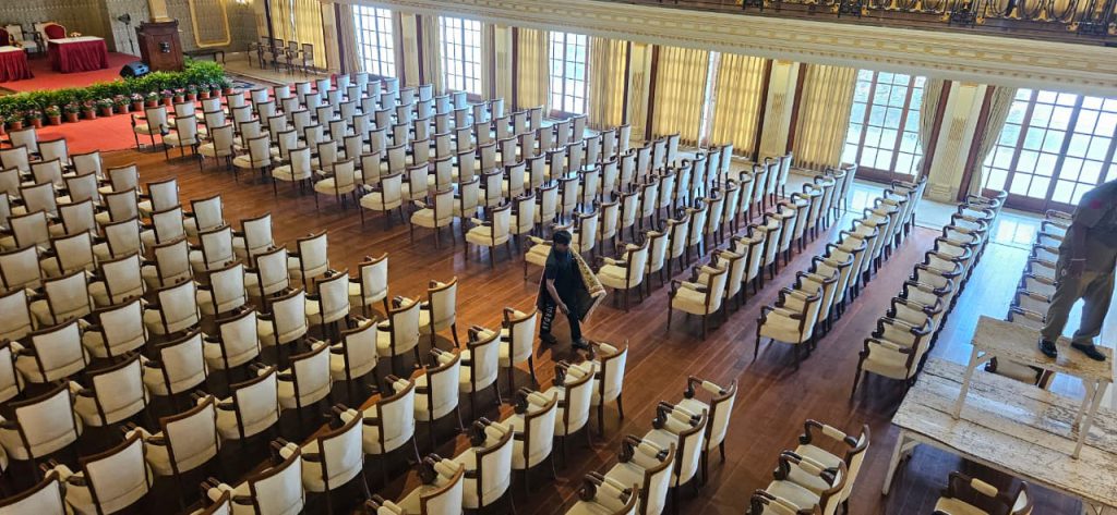 રાજભવનમાં ગણતરીના લોકોની હાજરીમાં રાજ્યના નાયબ મુખ્ય પ્રધાનપદના શપથ લેશે, ત્યારે રાજભવનમાં આવેલો આ હોલ આવનારા મહેમાનો માટે એકદમ સજ્જ નજરે પડી રહ્યો છે.