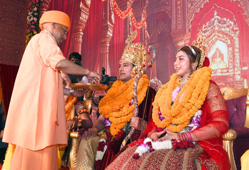 આ પૂર્વે સીએમ યોગી આદિત્યનાથ અયોધ્યા પહોંચ્યા હતા. તેમણે રામકથા પાર્ક હેલિપેડ પર પુષ્પક વિમાનના મોડેલ પર બનાવેલા હેલિકોપ્ટરમાંથી રામ, લક્ષ્મણ, સીતા અને હનુમાનજી સ્વાગત કર્યું હતું. મુખ્યમંત્રી યોગી આદિત્યનાથે રામકથા પાર્કના મંચ પર શ્રી રામને તિલક કર્યું હતું.