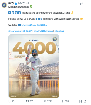 ગઈ કાલથી ક્રીઝમાં અડીખમ ટકી રહેલા રાહુલે (Rahul) 119 બૉલની લાંબી ઇનિંગ્સમાં 39 રન કર્યા હતા જેમાં એક છગ્ગો અને ચાર ચોક્કા સામેલ હતા. સ્પિનર કેશવ મહારાજના બૉલમાં સ્લિપમાં એઇડન માર્કરમે થોડા ફમ્બલ થયા બાદ નીચો કૅચ ઝીલ્યો હતો અને મહારાજને રાહુલની પ્રાઈઝ વિકેટ અપાવી હતી.