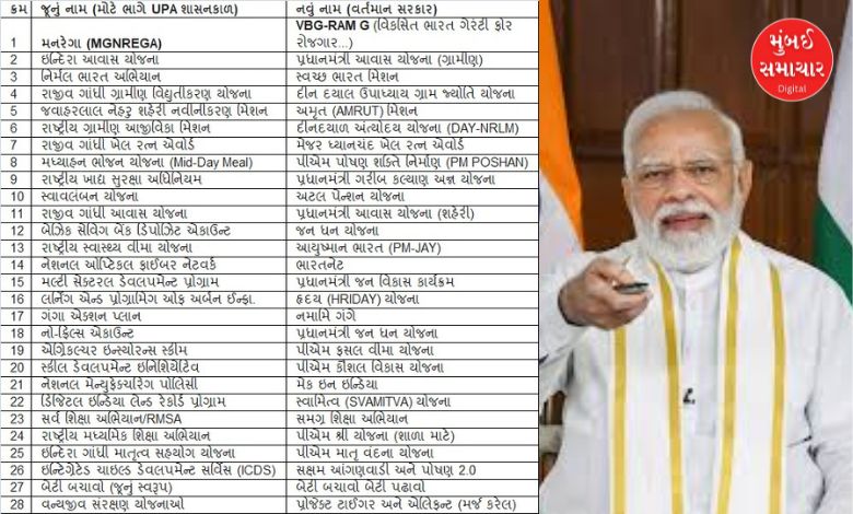 વાસ્તવમાં આ એક યોજના સુધી સીમિત નથી, પરંતુ વ્યાપક રાજનીતિ અને વૈચારિક બદલાવો હિસ્સો છે. છેલ્લા એક દાયકાથી વધુ સમયમાં જૂની યોજના, રસ્તાઓ, સંસ્થાઓ અને કાયદાઓને નવા નામ મળ્યા છે, જેને નવી ઓળખ મળી છે.