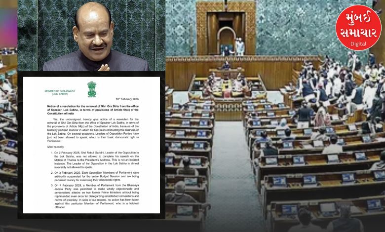 લોકસભામાં 118 સાંસદોના હસ્તાક્ષર સાથે સ્પીકર ઓમ બિરલા વિરુદ્ધ અવિશ્વાસ પ્રસ્તાવ રજૂ કરાયો