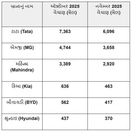 નવેમ્બરમાં EV વેચાણ ઘટ્યું: ટાટા મોટર્સ ‘માર્કેટ કિંગ’ અને મહિન્દ્રાનો દબદબો કાયમ, જુઓ આંકડા
