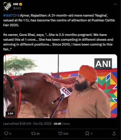65 ઇંચ ઊંચી, સુડોળ શરીર અને તેજ ચાલ, જાણે રેતી પર હવાની સાથે દોડી રહી હોય. આ જ કારણ છે કે અત્યાર સુધીમાં આ ઘોડીની કિંમત એક કરોડ રૂપિયા સુધી પહોંચી ગઈ છે. ઘણા વેપારીઓએ તેને ખરીદવાની ઓફર કરી, પરંતુ નગીનાના માલિક માટે તે માત્ર એક ઘોડી જ નહીં, પરંતુ “ઘરની શાન અને પરિવારનો સભ્ય” છે.