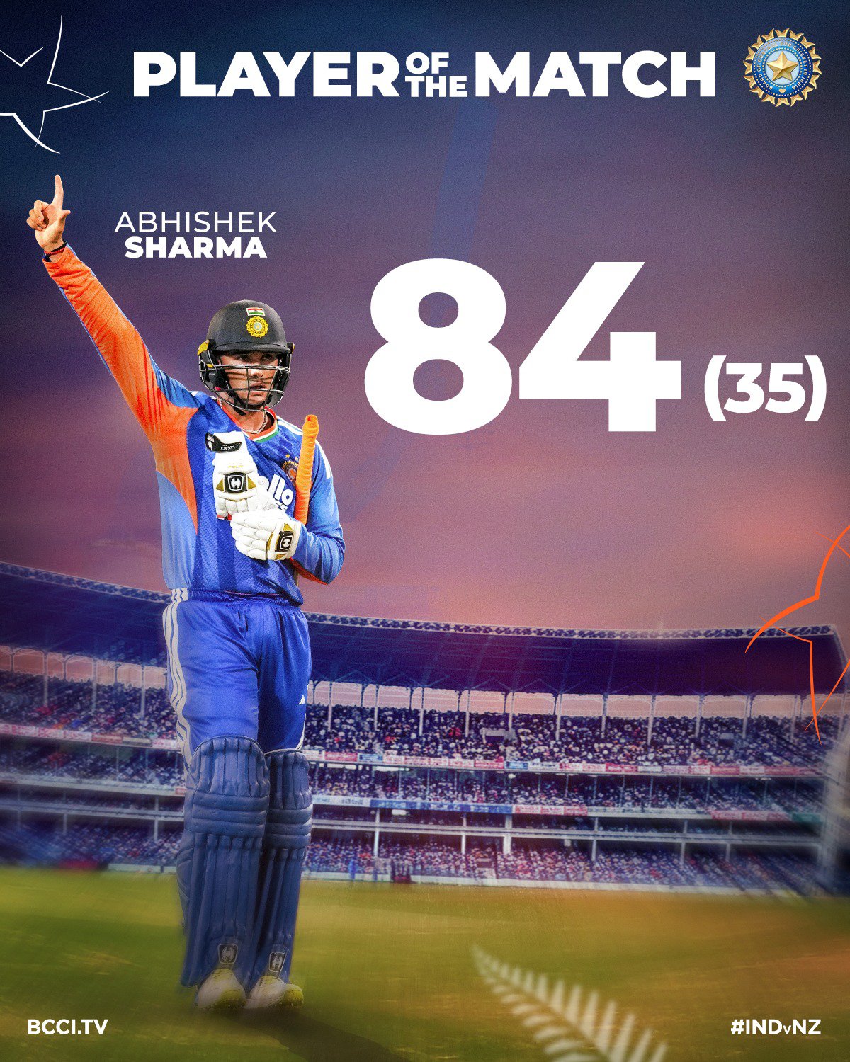 નાગપુર: બુધવારે અહીં ન્યૂ ઝીલૅન્ડ સામે પાંચ મૅચવાળી સિરીઝની પ્રથમ ટી-20માં મૅચ-વિનિંગ ઇનિંગ્સ રમનાર અભિષેક શર્મા (84 રન, 35 બૉલ, આઠ છગ્ગા પાંચ ચોગ્ગા)એ દિવસે ટી-20 (T20) આંતરરાષ્ટ્રીય ક્રિકેટમાં વિરલ સિદ્ધિ મેળવી હતી જેમાં તે આ ફોર્મેટમાં સૌથી ઝડપે (સૌથી ઓછા બૉલમાં) 5,000 રન પૂરા કરનાર બૅટ્સમૅન બન્યો હતો.
