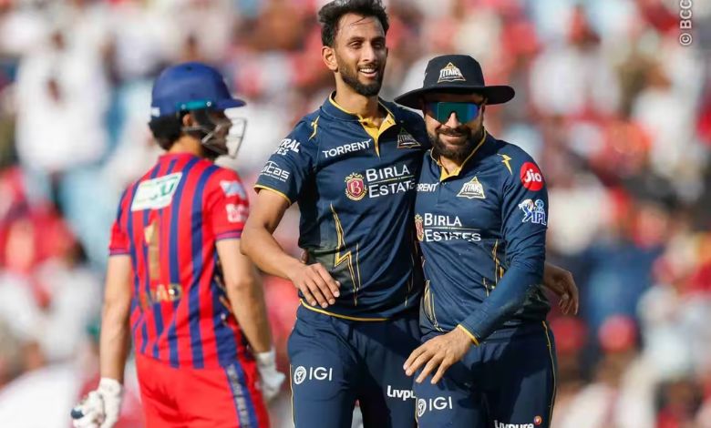 લખનઊમાં ગુજરાત ટાઇટન્સે બૅટિંગ આપ્યા બાદ લખનઊ સુપર જાયન્ટ્સે 20 ઓવરમાં આઠ વિકેટે 164 રન કર્યા જેમાંથી ચાર વિકેટ ગુજરાતના પેસ બોલર પ્રસિદ્ધ ક્રિષ્નાએ લીધી હતી. ભારતીય ટીમમાં કમબૅક કરવાના હેતુથી આ વખતની આઇપીએલમાં તનતોડ મહેનત કરી રહેલા ક્રિષ્નાએ કુલ 10 વિકેટ લીધી છે અને આ ઇનિંગ્સને અંતે તમામ બોલર્સમાં મોખરે હતો. માર્કરમ 30 રને વિકેટ ગુમાવી બેઠો ત્યાર બાદ લખનઊના સાત બૅટ્સમેનના ડબલ ડિજિટમાં રન હતા, પણ એકેય પ્લેયર 20 રન પણ નહોતો કરી શક્યો. પાછલી મૅચનો સુપરસ્ટાર અને મૅચ-ફિનિશર મુકુલ ચૌધરી (18 રન, 14 બૉલ, એક સિક્સર, એક ફોર) ક્રિષ્નાનો શિકાર થયો હતો. ક્રિષ્નાએ તેને વિકેટકીપર બટલરના હાથમાં કૅચઆઉટ કરાવ્યો હતો. ફાસ્ટ બોલર અશોક શર્માએ બે તેમ જ સિરાજ-રબાડાએ એક-એક વિકેટ લીધી હતી.