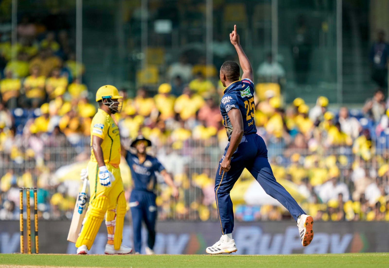 ગુજરાત ટાઇટન્સ (જીટી)એ ચેન્નઈમાં ચેન્નઈ સુપર કિંગ્સ (સીએસકે)ને પ્રથમ બૅટિંગ આપ્યા બાદ એને મુસીમતમાં મૂકી દીધું છે. સીએસકેએ પાવરપ્લેની છ ઓવરમાં ફક્ત 28 રનમાં ત્રણ વિકેટ ગુમાવી દીધી. સુપરસ્ટાર બૅટ્સમૅન સંજુ સૅમસન (11 રન)ને રબાડાએ વિકેટકીપર બટલરના હાથમાં કૅચઆઉટ કરાવ્યો ત્યાર બાદ સીએસકેને બીજા બે આંચકા લાગ્યા હતા. ઉર્વિલ પટેલ ફક્ત ચાર રન કરીને આઉટ થઈ ગયો ત્યાર બાદ તેના સ્થાને ઇમ્પૅક્ટ પ્લેયર તરીકે બોલાવવામાં આવેલો સરફરાઝ ખાન (0) તેના પહેલા જ બૉલ પર આઉટ થઈ ગયો હતો. ઉર્વિલને પણ રબાડાએ આઉટ કર્યો હતો, જ્યારે સરફરાઝની વિકેટ મોહમ્મદ સિરાજે લીધી હતી. 3/34ના સ્કોર વખતે કૅપ્ટન ઋતુરાજ ગાયકવાડ 16 રને અને ડેવાલ્ડ બે્રવિસ બે રને રમી રહ્યો હતો.