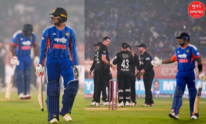 ભારતીય ટીમ 216 રનના લક્ષ્યાંક સામે 18.4 ઓવરમાં 165 રનના સ્કોર પર ઑલઆઉટ થતાં પ્રવાસી ટીમનો 50 રનથી વિજય થયો હતો. ઇનિંગ્સના પ્રથમ બૉલ પર અભિષેક શર્મા (0)ની અને નવમા રને કૅપ્ટન સૂર્યકુમાર યાદવ (આઠ રન)ની વિકેટ પડ્યા બાદ ભારતે પંચાવનમા રને સંજુ સૅમસન (24 રન) અને 63મા રને હાર્દિક પંડ્યા (બે રન)ની વિકેટ ગુમાવી દીધી હતી. રિન્કુ સિંહ (39 રન, 30 બૉલ, બે સિક્સર, ત્રણ ફોર)એ હિંમતથી બોલર્સનો સામનો કર્યો હતો. હર્ષિત રાણા નવ રન કરી શક્યો હતો, જ્યારે રવિ બિશ્નોઈ 10 રને અણનમ રહ્યો હતો. સૅન્ટનરે ત્રણ તથા ડફી અને સોઢીએ બે-બે વિકેટ લીધી હતી.