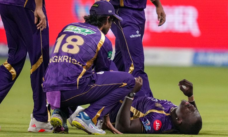 કોલકાતાના રૉવમૅન પૉવેલને લખનઊના મિચલ માર્શનો ડાઇવિંગ કૅચ ઝીલતી વખતે ઈજા થઈ હતી. માર્શે ફક્ત બે રન બનાવ્યા હતા. તે વૈભવ અરોરાના બૉલમાં પૉવેલના હાથમાં કૅચઆઉટ થયો હતો.