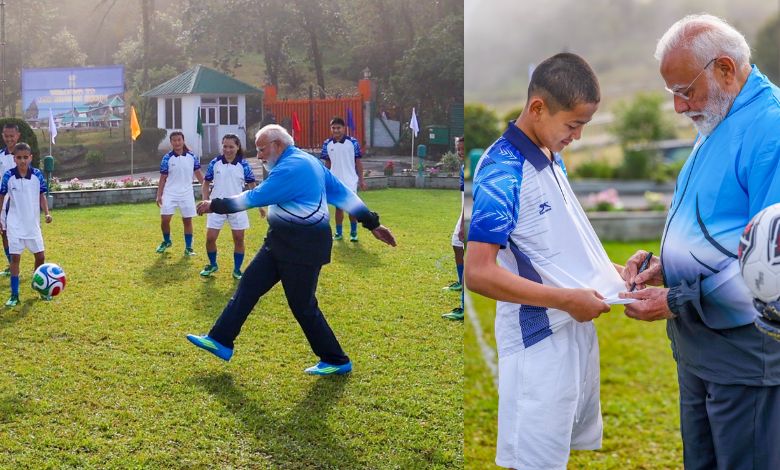 પીએમ મોદી (Modi) ટ્રાઉઝર અને જૅકેટ સાથે ખાસ ડ્રેસમાં ગન્ગટૉક શહેરમાં લોક ભવન નજીકના મેદાનમાં ફૂટબૉલ રમ્યા હતા. આ સૉકર સેશનથી પોતાનામાં ખૂબ ઊર્જા આવી ગઈ હોવાનું મોદીએ પછીથી સોશ્યલ મીડિયામાં જણાવ્યું હતું.