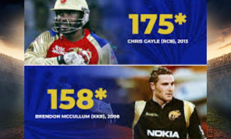 2008ની 18મી એપ્રિલે સૌપ્રથમ આઇપીએલમાં કોલકાતા નાઇટ રાઇડર્સના બે્રન્ડન મૅક્લમે (158 અણનમ, 73 બૉલ, 13 સિક્સર, 10 ફોર) ટૂર્નામેન્ટના સૌથી પહેલા જ દિવસે ધમાકેદાર પર્ફોર્મ કર્યું હતું. કોલકાતાએ એ મૅચમાં બેંગ્લૂરુને 140 રનથી હરાવ્યું હતું. જોકે આ ટૂર્નામેન્ટના 19 વર્ષના ઇતિહાસમાં સૌથી મોટો વ્યક્તિગત સ્કોર ક્રિસ ગેઇલના નામે છે. 2013ની 23મી એપ્રિલે બેંગ્લૂરુ વતી રમીને ક્રિસ ગેઇલે (175 અણનમ, 66 બૉલ, 17 સિક્સર, 13 ફોર) પુણે વૉરિયર્સ સામે 175 રનનો જે રેકૉર્ડ કર્યો એ 13 વર્ષ પછી પણ હજી તૂટ્યો નથી. બેંગ્લૂરુએ એ મૅચમાં પુણેને 130 રનથી હરાવ્યું હતું.