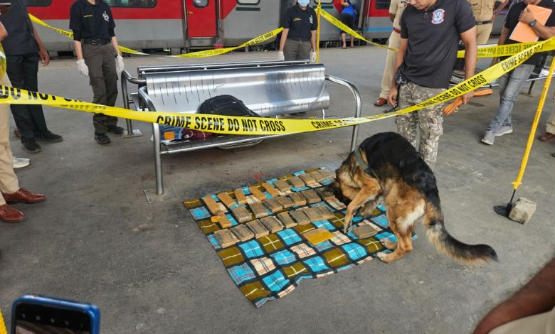 જથ્થાની તપાસ માટે ડોગ સ્ક્વોડ સહિત ફોરેન્સિક ટીમ દ્વારા પણ તપાસ હાથ ધરવામાં આવી હતી, ત્યાર પછી સવા સાત વાગ્યાના સુમારે સ્પષ્ટ થયું હતું કે બેગમાં પ્રતિબંધિત જથ્થો છે. જોકે, સૌથી મહત્ત્વની વાત એ છે કે આ બેગમાં ચરસનો જથ્થો હોવાનું આરપીએફના ડોગ 'ટેંગા' અને રેલવે પોલીસના ડોગ 'રોકી' નામના ડોગીએ માદક પદાર્થ હોવાના સંકેત આપ્યા હતા. બેગમાંથી 31 જેટલા બ્રાઉન ટેપથી રેપ કરેલા પેકેટમાં કાળા રંગનો ચરસનો જથ્થો હોવાનું જાણવા મળ્યું હતું. આ મટીરિયલનું કુલ વજન 13.834 કિલોગ્રામ છે.