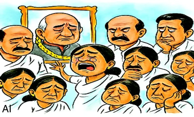 આ તરફ, રઘુવીરભાઈ તો પરીક્ષા આપવાની હોય એમ આંટા મારતા જાય ને ગોખતા જાય. બીજા બે જમાઈએ પણ મૌલિક બોલવાનું હતું. એમાં શું બોલવું એ ન સમજાતાં એ બંનેએ કેટલાક યુવાનો પાસે ગૂગલ-યૂ ટ્યૂબ ખોલાવીને મરણ પછી શોકસભામાં શું બોલવું એ શોધવામાં પરોવાયા. સ્ટેજ ઉપર બધા જમાઈઓ અને દીકરા જાણે પરીક્ષા હોલમાં હોય એમ આંટાફેરા લગાવતા જાય અને કંઈ ને કંઈ ગોખતા જાય. આવો માહોલ જોઈને એક પત્રકારે નાના જમાઈને પૂછ્યું: