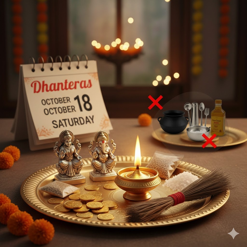 ધનતેરસનો તહેવાર માતા લક્ષ્મી અને ભગવાન ગણેશને સમર્પિત છે, જ્યાં નવી વસ્તુઓ ખરીદવાથી ધન અને સમૃદ્ધિનું આગમન થાય છે. પરંતુ આ વખતે તે શનિવારે પડતા હોવાથી જ્યોતિષ શાસ્ત્ર શનિ દેવ સાથે જોડાયેલી વસ્તુઓની ખરીદીને ટાળવાની સલાહ આપવામાં આવે છે. આ તહેવાર પર ધાતુના વાસણો, સાવરણી, સોનું, ચાંદી, મીઠું, ધાણાની ખરીદીનું અનેરું મહત્વ ગણાય છે. પરંતુ કેટલીક વસ્તુઓને ઘરમાં લાવવાથી અપશુકન માનવામાં આવે છે.