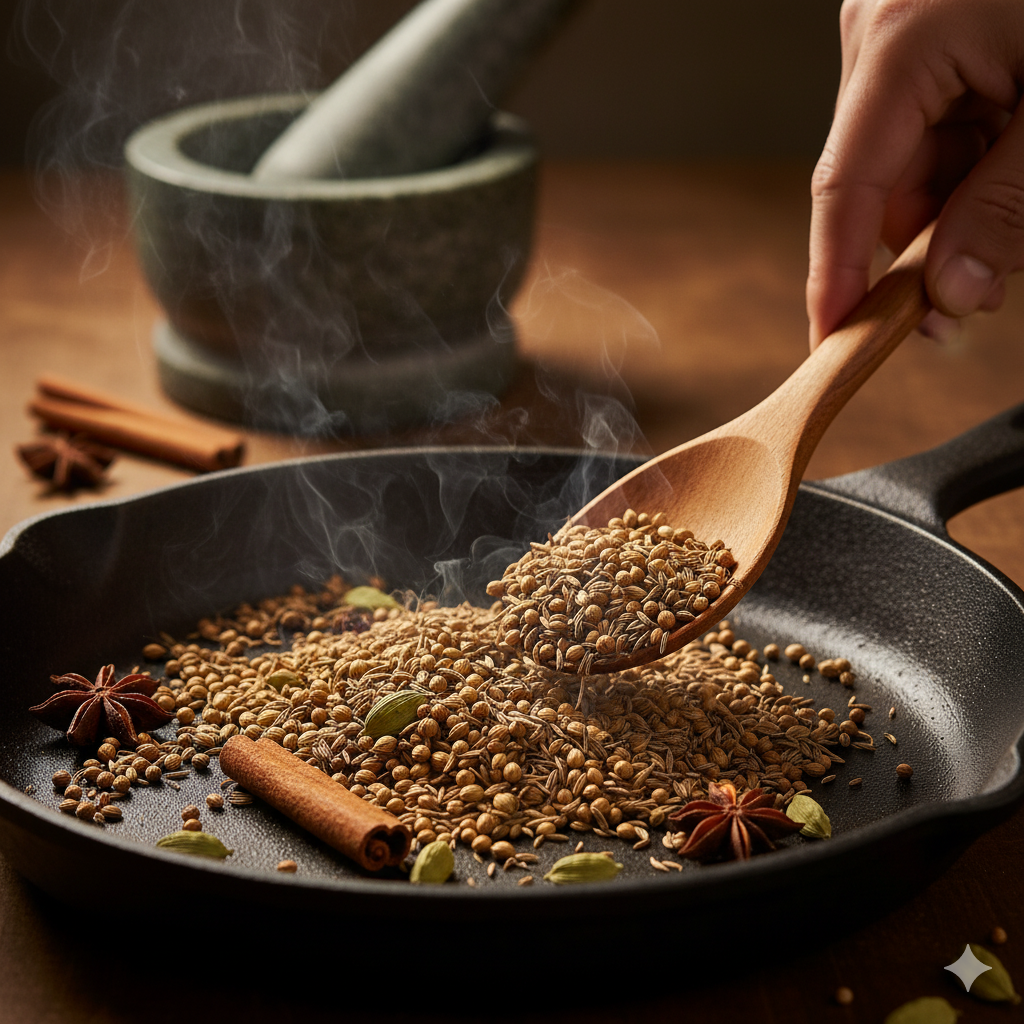 ⦁ મસાલાને પીસતાં પહેલાં રોસ્ટ કરી લો