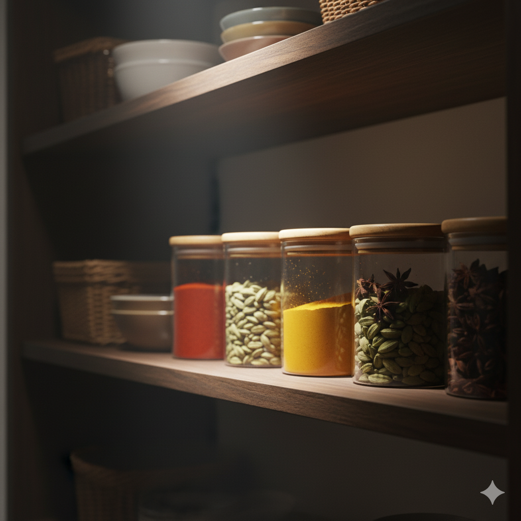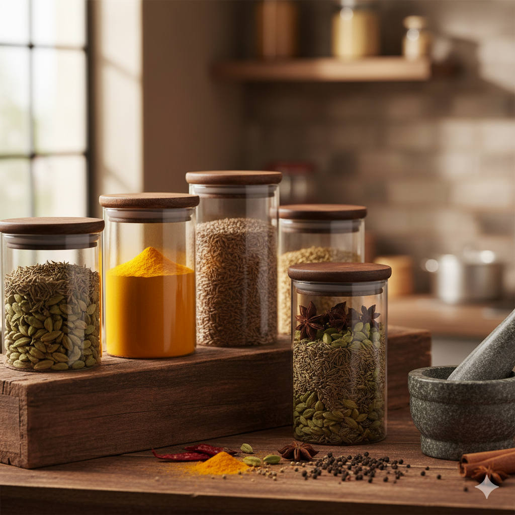 સૌથી પહેલાં તો ધ્યાનમાં રાખો મસાલાને એરટાઈટ કન્ટેનરમાં સ્ટોર કરો. સ્ટીલ, કાચ કે ફૂડ ગ્રેડ પ્લાસ્ટિકના જાર બેસ્ટ ચોઈસ છે અને તેમાં હવા કે ભેજ કે હવા અંદર નથી જતાં. મસાલા લાંબા સમય સુદી તાજા રહે છે. મસાલાને ખુલ્લા રાખવાનું ટાળો અને જરૂર પ્રમાણે થોડા થોડા કાઢીને વાપરવાનું રાખો.