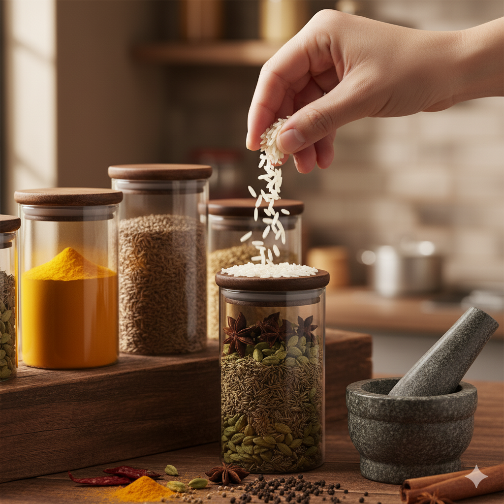 મસાલાને લાંબા સમય સુધી તરોતાજા રાખવા માટે તેમાં ચોખા કે પછી તમાલપત્ર નાખી શકો છો. આ બંને વસ્તુઓ ભેજ શોષી લે છે અને મસાલા તાજા રહે છે. આ સિવાય મસાલાને એખ સાથે મિક્સ ના કરો, જેથી તેમનો સ્વાદ અને સુગંધ મિક્સ થઈ જશે.