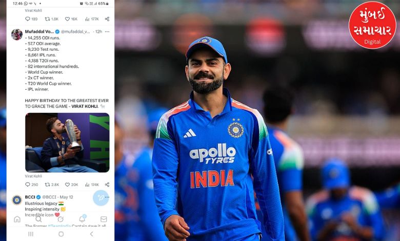 મુંબઈ: ભારતના ભૂતપૂર્વ કેપ્ટન અને વર્તમાન ક્રિકેટના સર્વશ્રેષ્ઠ બૅટ્સમૅન વિરાટ કોહલીનો આજે 37મો જન્મદિન છે. મુંબઈ અને દિલ્હી સહિત દેશમાં વિરાટના કેટલાક શહેરોમાં ઘર અને રેસ્ટોરાં છે અને તે હવે વર્ષ દરમ્યાન મોટા ભાગે પત્ની અનુષ્કા તથા પુત્રી વામિકા અને પુત્ર અકાય સાથે લંડનના નિવાસસ્થાને જ રહે છે, પરંતુ કરોડો ક્રિકેટપ્રેમીઓના દિલમાં તે હંમેશાં વસે છે.