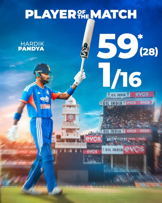 કટકઃ ભારતે સાઉથ આફ્રિકા સામેની વન-ડે શ્રેણીની જેમ ટી-20 સિરીઝમાં પણ વિજયી શ્રીગણેશ કર્યા છે. ગઈ કાલે ભારતનો 101 રનથી વિજય થયો હતો. કટકની આ મૅચમાં ભારતે બૅટિંગ મળ્યા પછી શરૂઆતના ધબડકા જોવા પડ્યા ત્યાર બાદ હાર્દિક પંડ્યા (59 અણનમ, 28 બૉલ, ચાર સિક્સર, છ ફોર)ની ધમાકેદાર ઇનિંગ્સની મદદથી પ્રવાસી ટીમને 176 રનનો પડકારરૂપ લક્ષ્યાંક આપ્યો હતો.