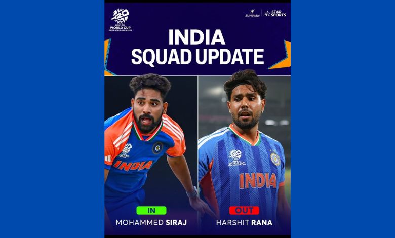 મુંબઈ: ડિફેન્ડિંગ ચેમ્પિયન ભારતે આજે શરૂ થયેલા ટી-20 વર્લ્ડ કપ માટેની ટીમમાં ઈજાગ્રસ્ત હર્ષિત રાણાના સ્થાને મોહમ્મદ સિરાજને સમાવ્યો છે. સિરાજ (Siraj) 19 મહિને ટી-20 આંતરરાષ્ટ્રીયમાં પાછો આવ્યો છે. તે છેલ્લે જુલાઈ, 2024માં ભારત વતી ટી-20 રમ્યો હતો.