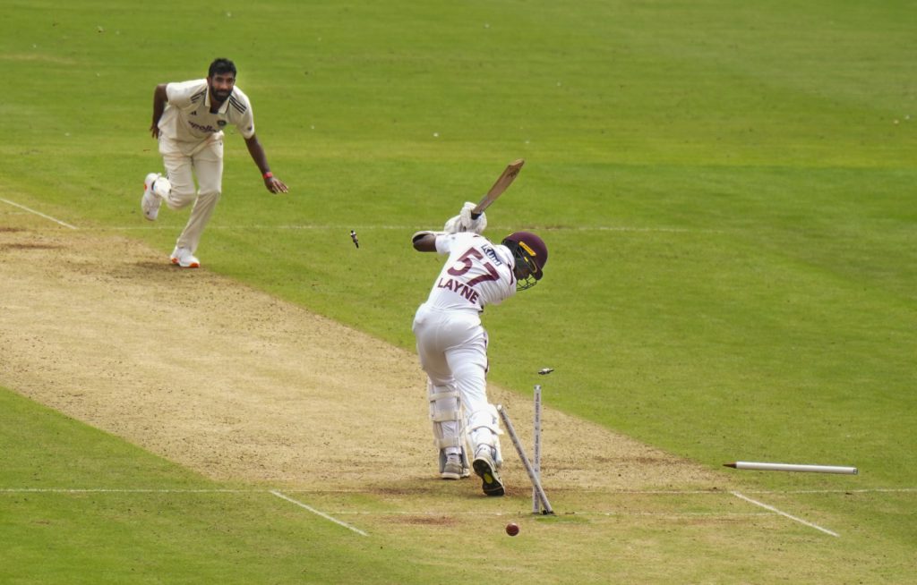 એ પહેલાં, વેસ્ટ ઇન્ડિઝે બૅટિંગ પસંદ કરી હતી, પરંતુ માત્ર 42 રનમાં ચાર વિકેટ ગુમાવી દીધી હતી. મોહમ્મદ સિરાજ (14-3-40-4)એ કૅરિબિયન ટીમની બૅટિંગ લાઇન-અપને સૌથી વધુ આંચકા આપ્યા હતા. વેસ્ટ ઇન્ડિઝની ટીમમાં ગાબડાં પાડવાની શરૂઆત તેણે જ કરી હતી. તેણે તેજનારાયણ ચંદરપૉલ (0)ને વિકેટકીપર ધ્રુવ જુરેલના હાથમાં કૅચઆઉટ કરાવ્યો હતો. સિરાજે ત્યાર પછી વધુ ત્રણ વિકેટ લીધી હતી અને કૅરિબિયન ટીમને સીમિત રખાવવામાં તેની સાથે જસપ્રીત બુમરાહ (14-3-42-3), કુલદીપ યાદવ (6.1-0-25-2) તથા વૉશિંગ્ટન સુંદર (3-0-9-1) પણ જોડાયા હતા.