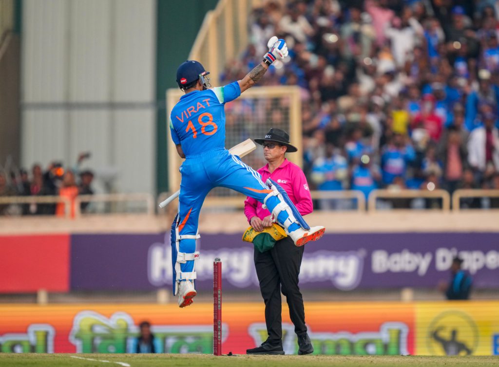 રાંચીઃ ભારતમાં ક્રિકેટની રમત ધર્મની જેમ પૂજાય છે અને સચિન તેન્ડુલકર તથા મહેન્દ્રસિંહ ધોની જેવા લેજન્ડને તેમના ઘણા ચાહકો ક્રિકેટના ભગવાન માનતા હોય છે અને એમાં હવે વિરાટ કોહલીનો પણ સમાવેશ થયો છે એમ કહી શકાય, કારણકે રવિવારે રાંચીમાં છગ્ગા-ચોક્કાના વરસાદ વચ્ચે બાવનમી વન-ડે સદી ફટકારનાર કોહલીને પગે લાગવા તેનો એક ચાહક સલામતી કવચ ભેદીને તેની પાસે દોડી આવ્યો હતો.