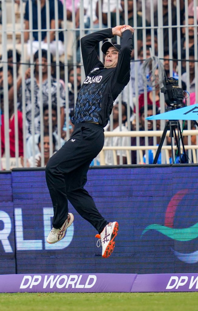 એક તબક્કે ચેપમેનની બાઉન્ડરી લાઈનની બહારની છલાંગ બાદ (તેણે હવામાં ઉછાળેલા બૉલમાં) મિચલે શરાફુનો કૅચ ઝીલ્યો હતો.